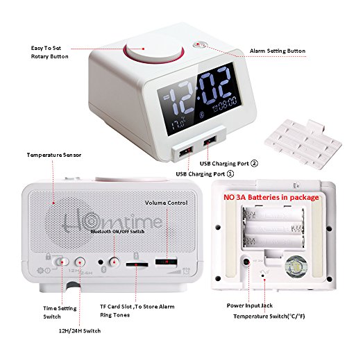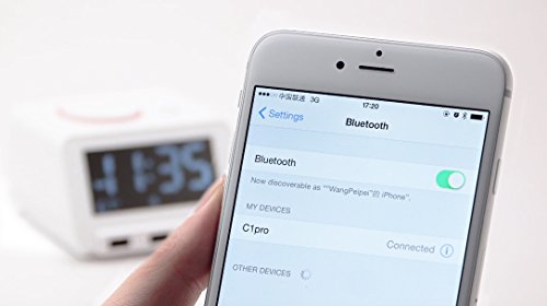 Der Hometime Bluetooth Wecker C1pro ist mit einem Bluetooth Lautsprecher ausgestattet. Sie können den Lautsprecher verwenden, um beispielsweise Musik von Ihrem Smartphone über die Box des Weckers abzuspielen. Die Verbindung ist dank der Bluetooth 2.1 Schnittstelle kabellos möglich und Sie können Ihr Handy auch ein ganzes Stück vom Wecker entfernt abspielen.