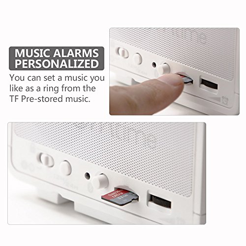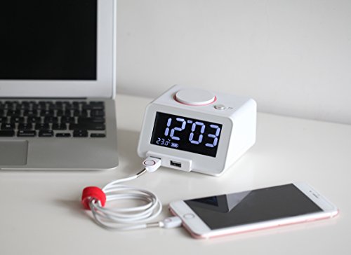 Zudem ist der Wecker mit einer USB-Schnittstelle ausgestattet, welche die Abspieloptionen erweitert. Sie können einen USB-Stick, beispielsweise einen MP3-Player, einstecken und die gespeicherten Songs wiedergeben. Praktisch ist auch die Möglichkeit, ein USB-Abspielgerät über den Wecker aufzuladen.